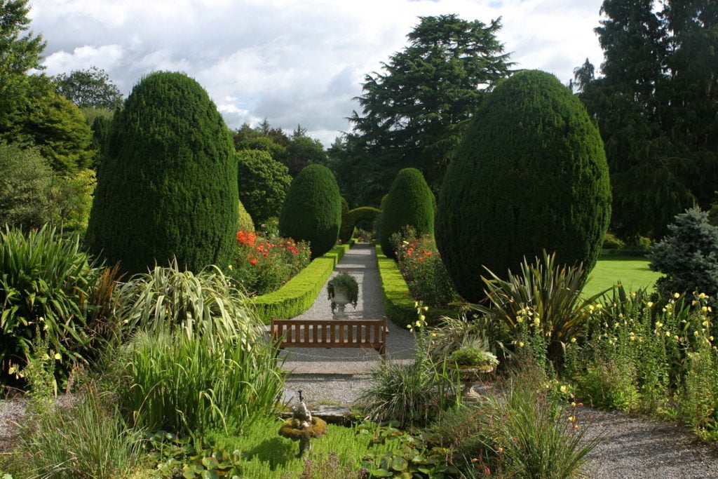 Altamont Gardens offer a range of formal and informal gardens with riverside walks covering over 40 acres (16 hectares). The estate gains much of its character from the many mature trees, natives in the avenues and woodland areas, and exotic specimens throughout the gardens. Lawns bisected by sculpted yews slope down to a lake surrounded by rare trees and rhododendrons and lead in turn to a very different garden featuring exotic shrubs and trees. A fascinating walk through the Arboretum, Bog Garden and Ice Age Glen with its canopy of ancient oaks and huge stone outcrops leads the visitor to the River Slaney.